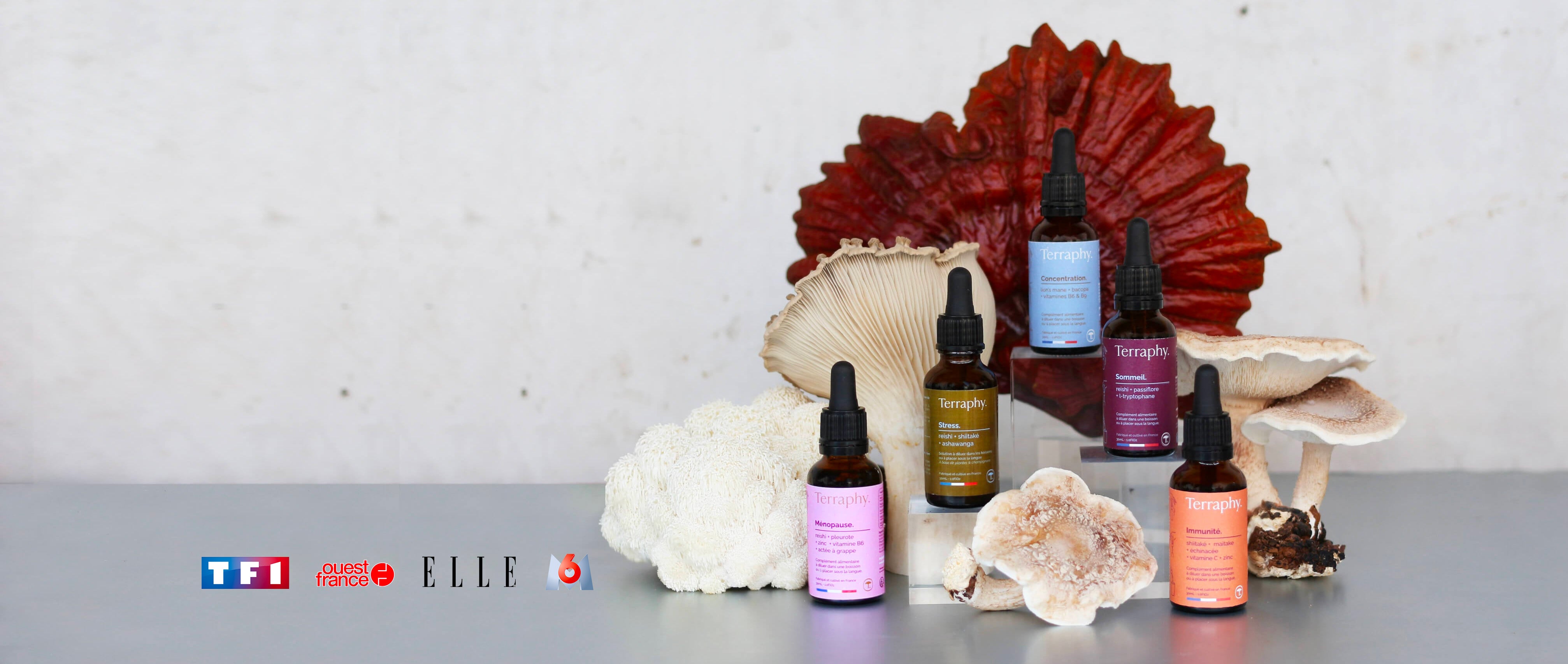 Élu Meilleur Complément Alimentaire 2025, Terraphy associe champignons français, plantes adaptogènes et vitamines dans un format liquide simple et efficace.