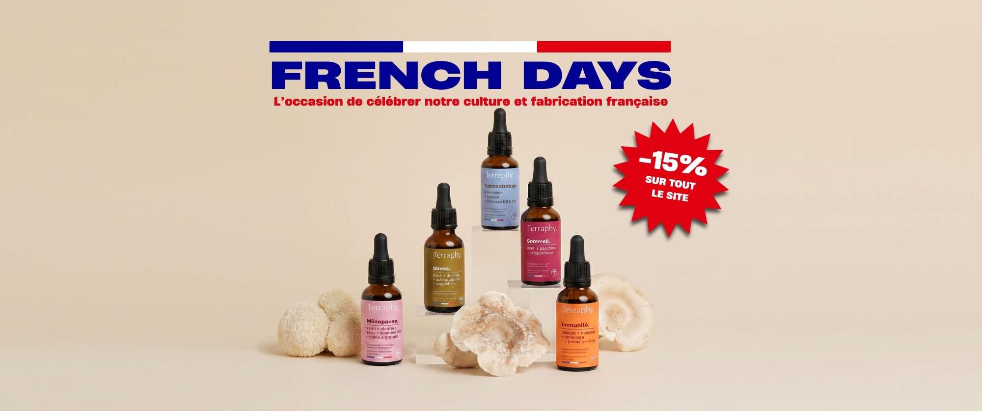 Élu Meilleur Complément Alimentaire 2025, Terraphy associe champignons français, plantes adaptogènes et vitamines dans un format liquide simple et efficace.